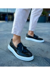Erkek Klasik Ayakkabı - Siyah Beyaz Rugan - 127